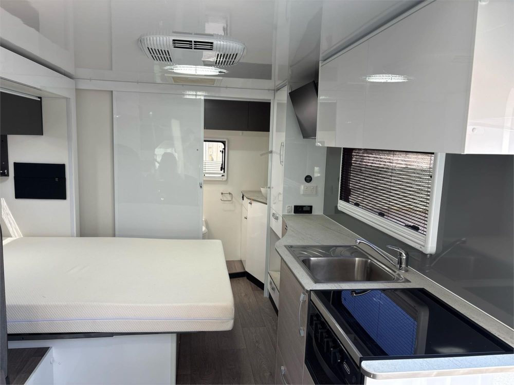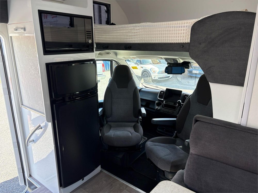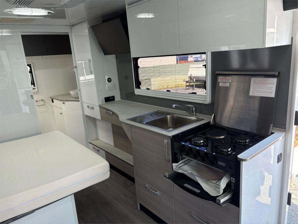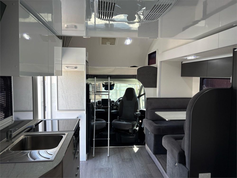 Bed‑over‑cab layout with internal slide‑out for expanded living space